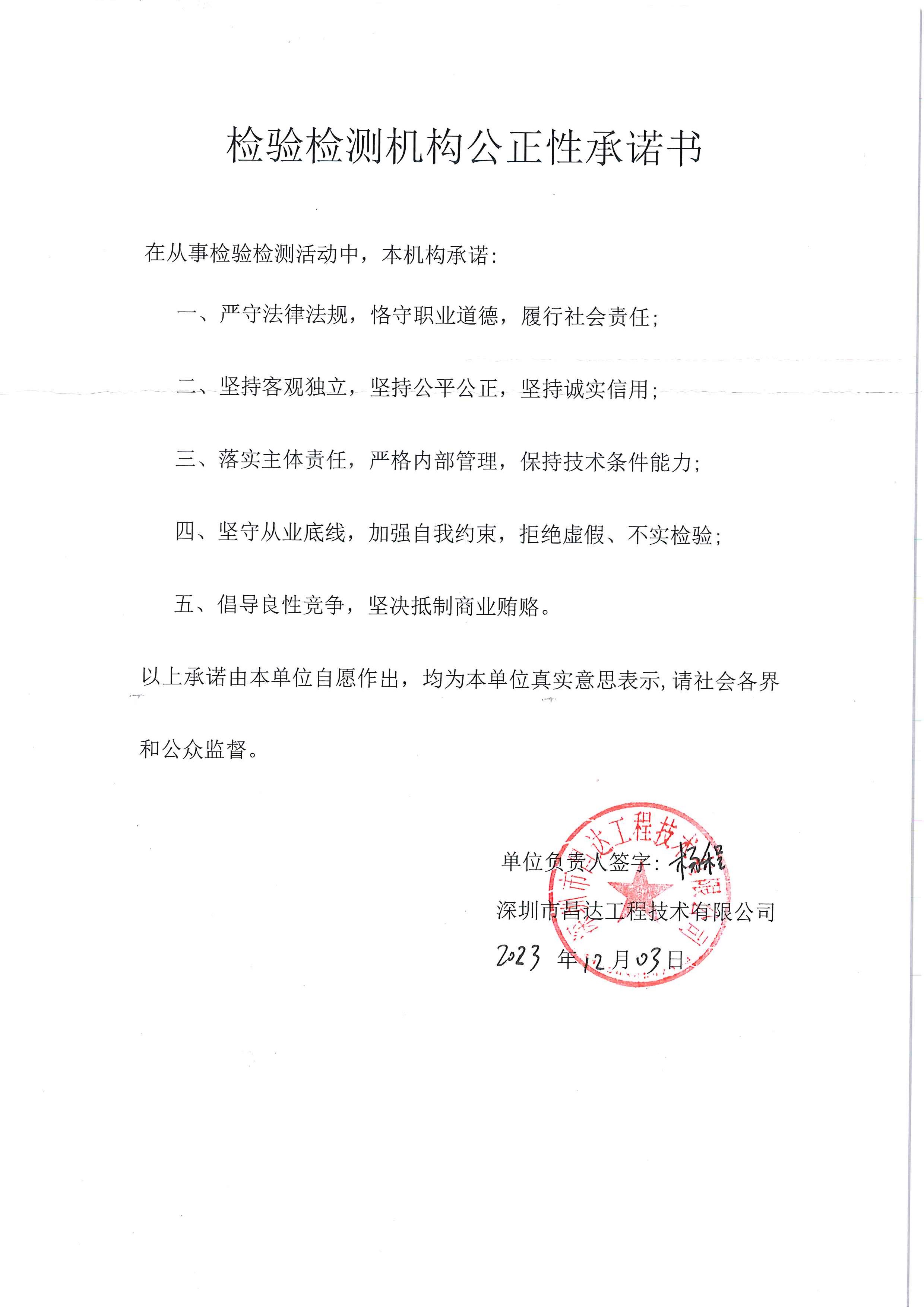 • 3、公司及其人員從事檢測(cè)活動(dòng),遵守國家相關(guān)法律法規(guī)的規(guī)定,遵循客觀獨(dú)立、公平公正、誠實(shí)信用原則,恪守職業(yè)道德,承擔(dān)社會(huì)責(zé)任。